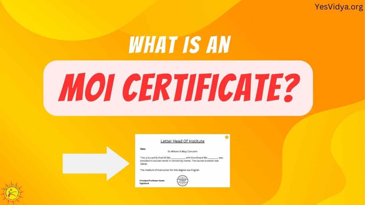 A medium of instruction certificate (MOI) is an official document provided by your school or college which states the language in which you completed your degree education. This certificate is commonly used as an alternative to English proficiency test.